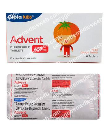 Advent DT is a broad-spectrum antibiotic used to treat various bacterial infections, including those affecting the respiratory tract, urinary tract, skin, ear, and soft tissues. It combines Amoxicillin, a penicillin-type antibiotic that kills bacteria, with Clavulanic Acid, which inhibits beta-lactamase enzymes that make bacteria resistant to antibiotics. This combination enhances effectiveness against resistant strains. The DT (dispersible tablet) formulation is especially suited for children and those with difficulty swallowing.